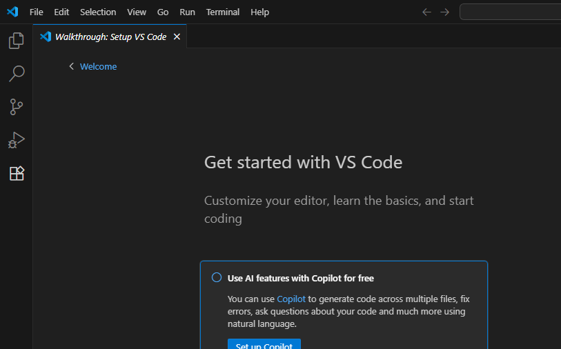 1.左のツール一覧から「拡張機能(Ctrl+Shift+X)」をクリックします。