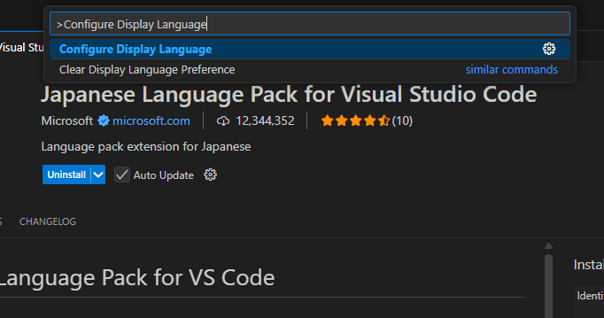 6.コマンドパレットに「Configure Display Language」と入力します。